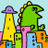 怪獣タウン ゆるかわ落書き風壁紙きせかえ - Miasto potworów, tapeta w stylu luźnego rysunku graffiti